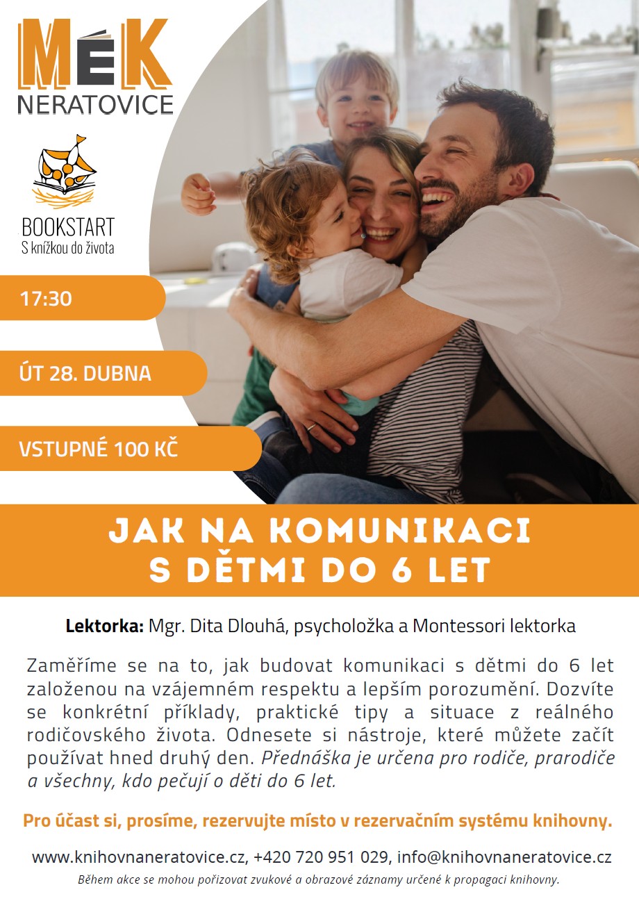 Rádi bychom pozvali rodiče i všechny ostatní zájemce na besedu "Jak na komunikaci s dětmi do 6 let" s psycholožkou a Montessori lektorkou Mgr. Ditou Dlouhou